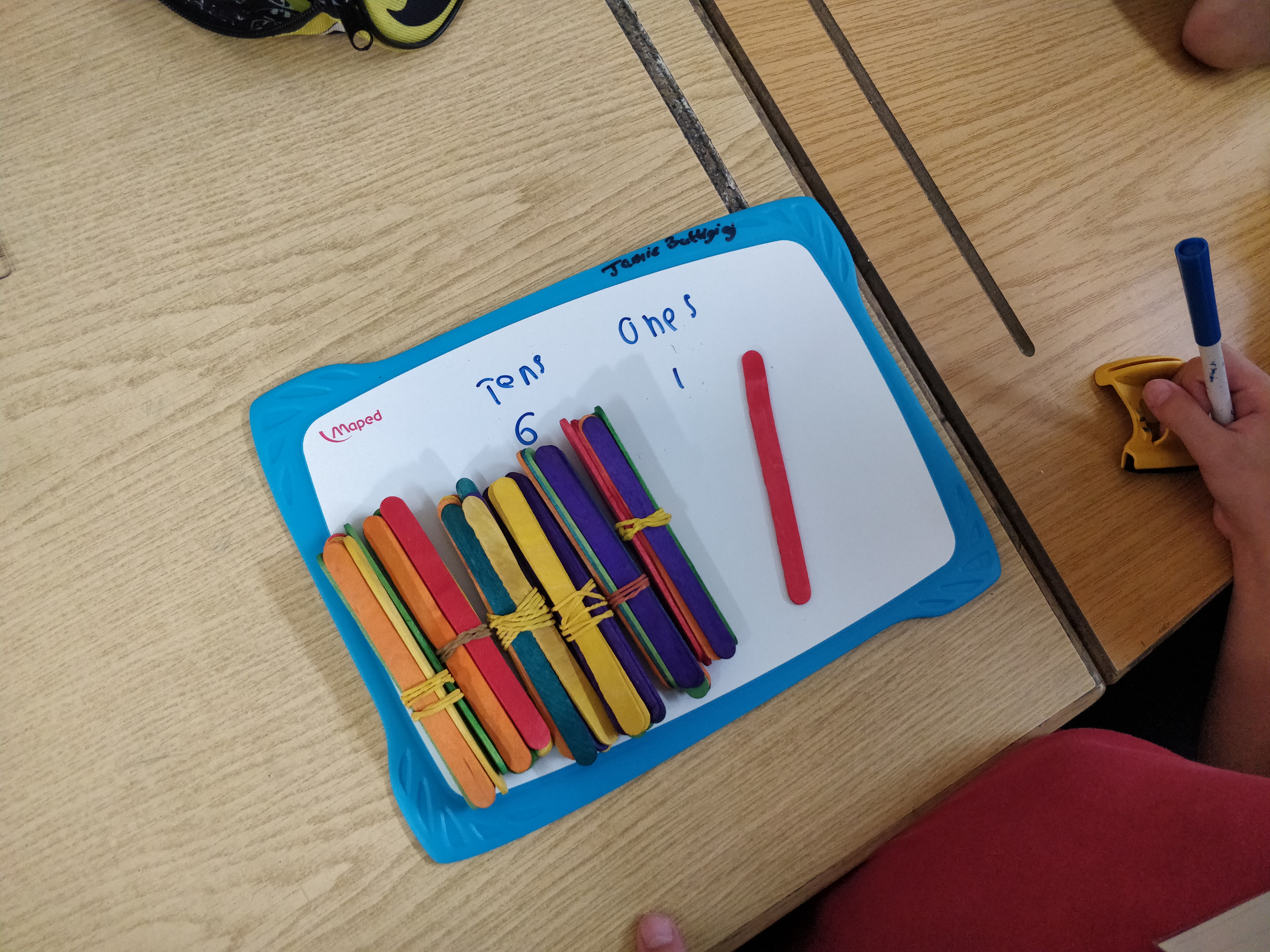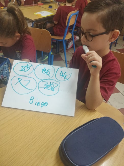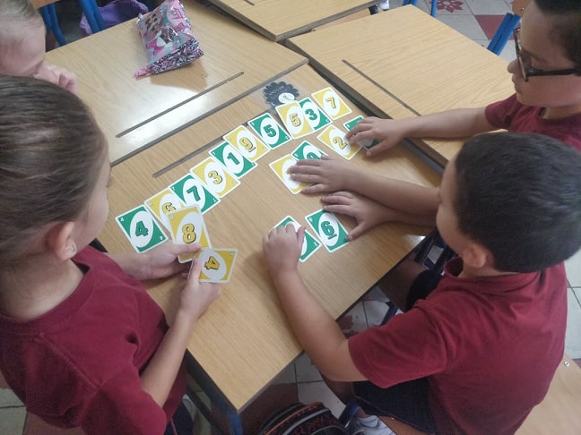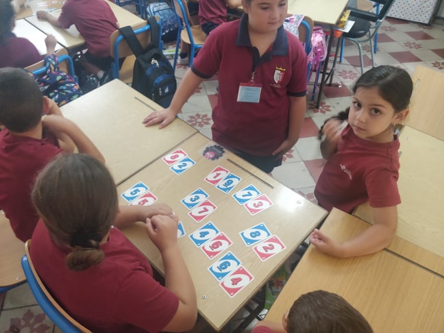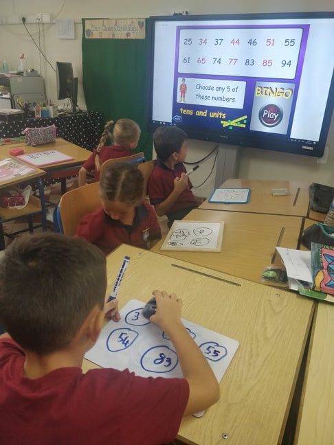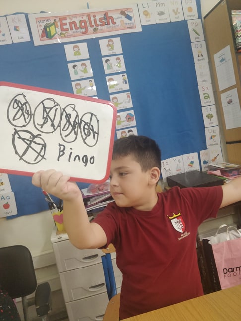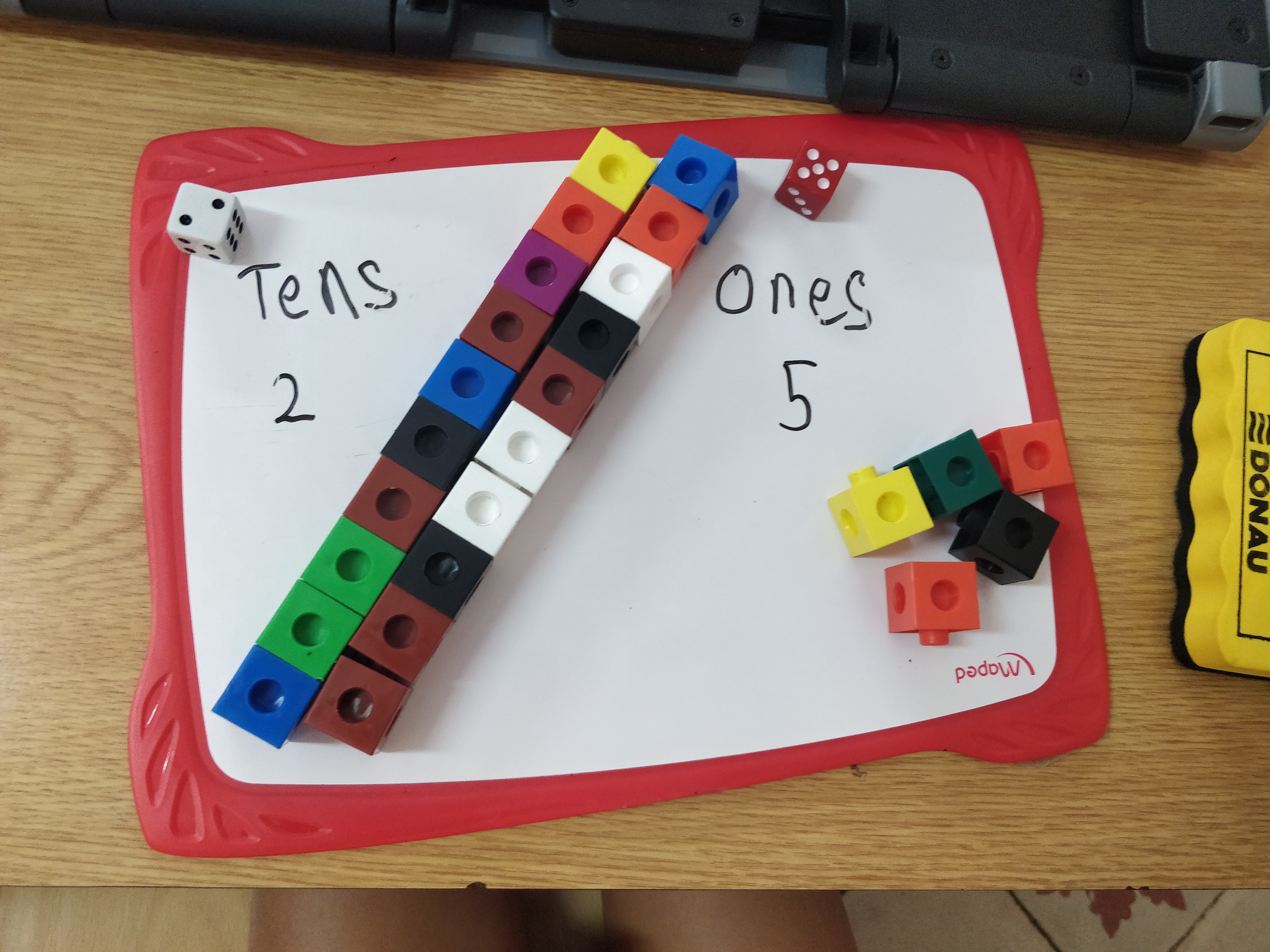 Learning place value and bonds of ten in a fun way through online interactive games and group tasks. We played the ‘roll the dice and build it’ game with cubes and lollipop sticks. It was also fun to use the UNO cards to play the memory game of making 10. But our most favourite game was the BINGO!