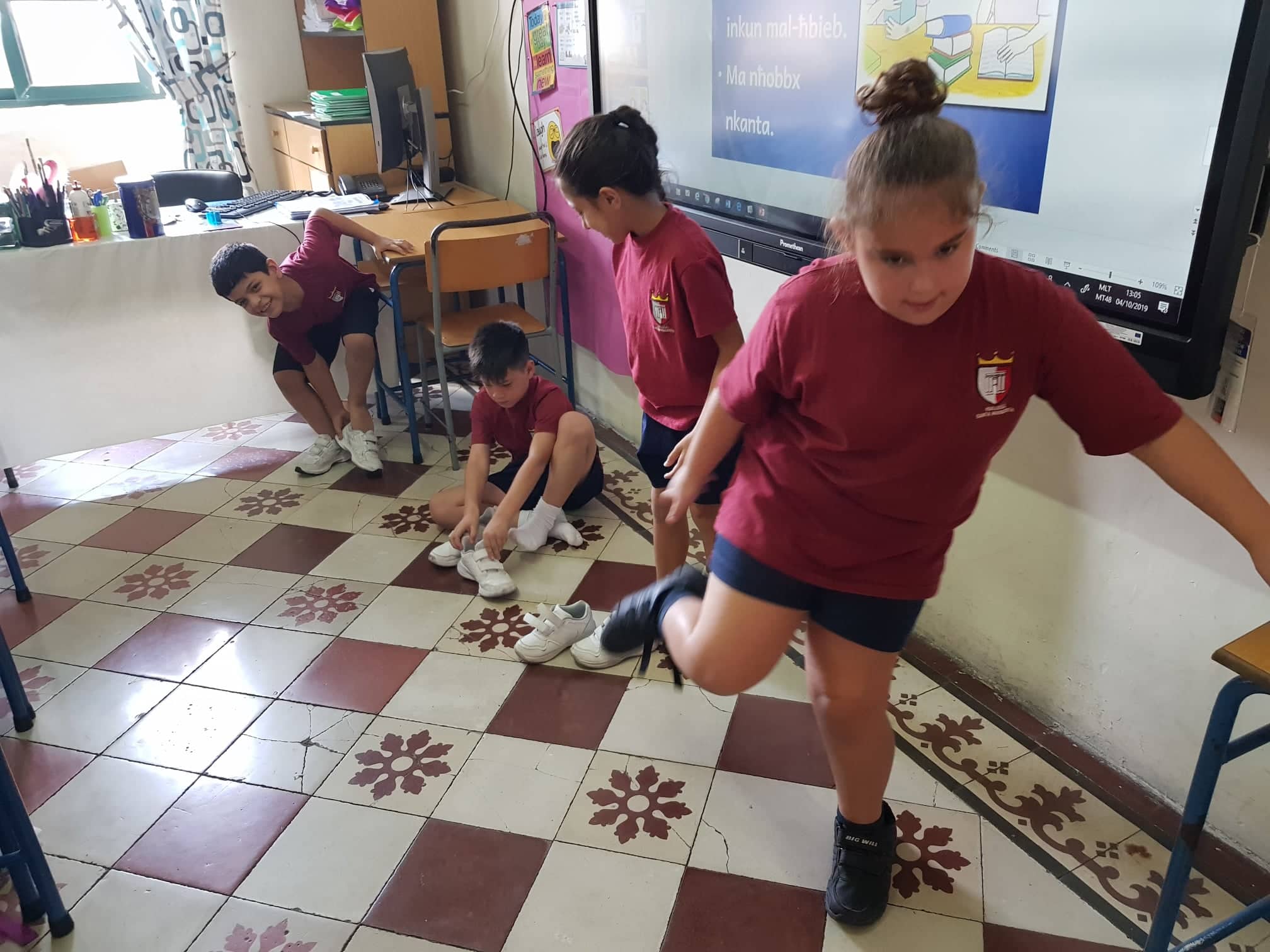 Our first activity was the “Shoe Challenge”. Four children took off their shoes and then they put them back on.