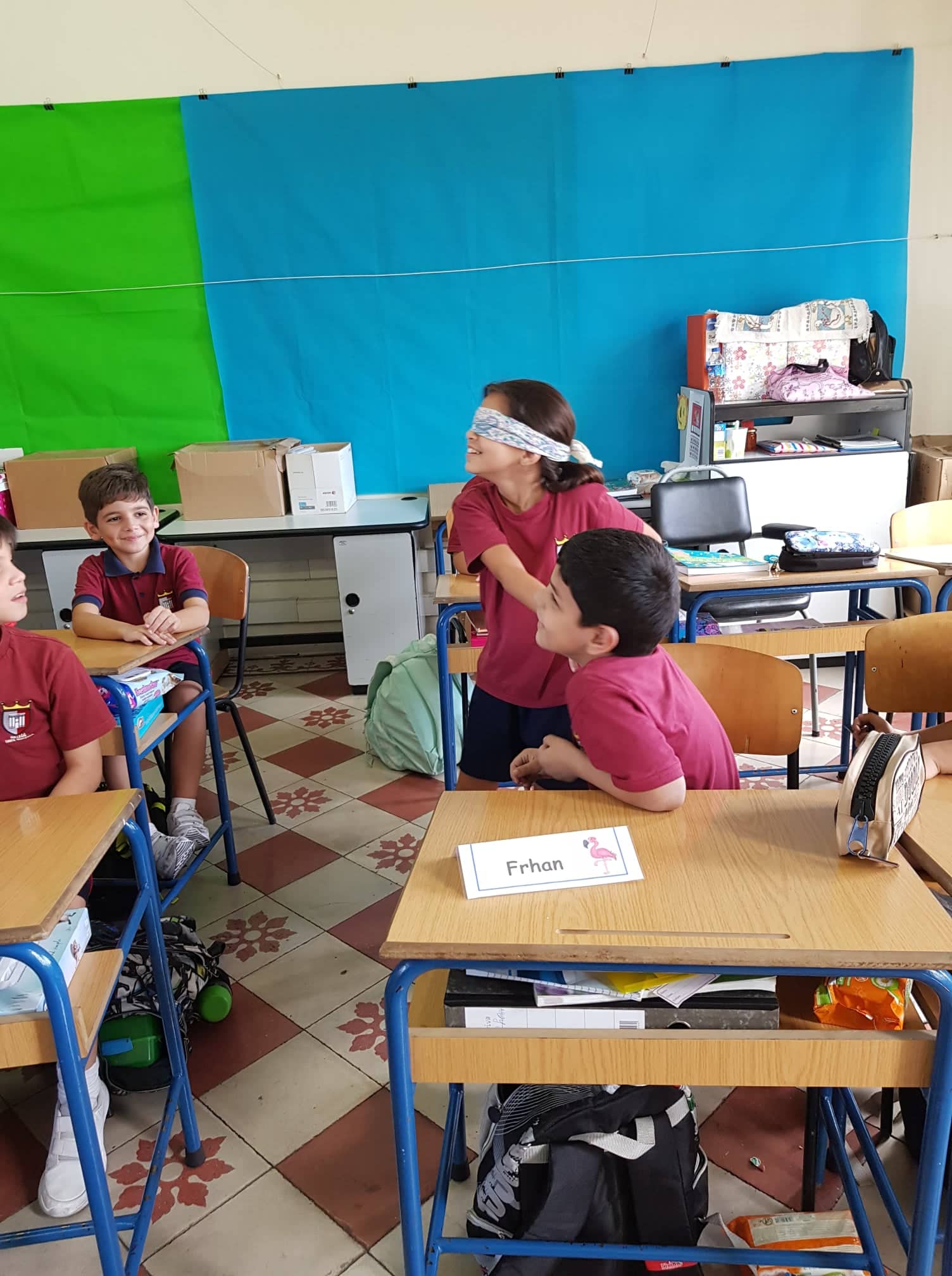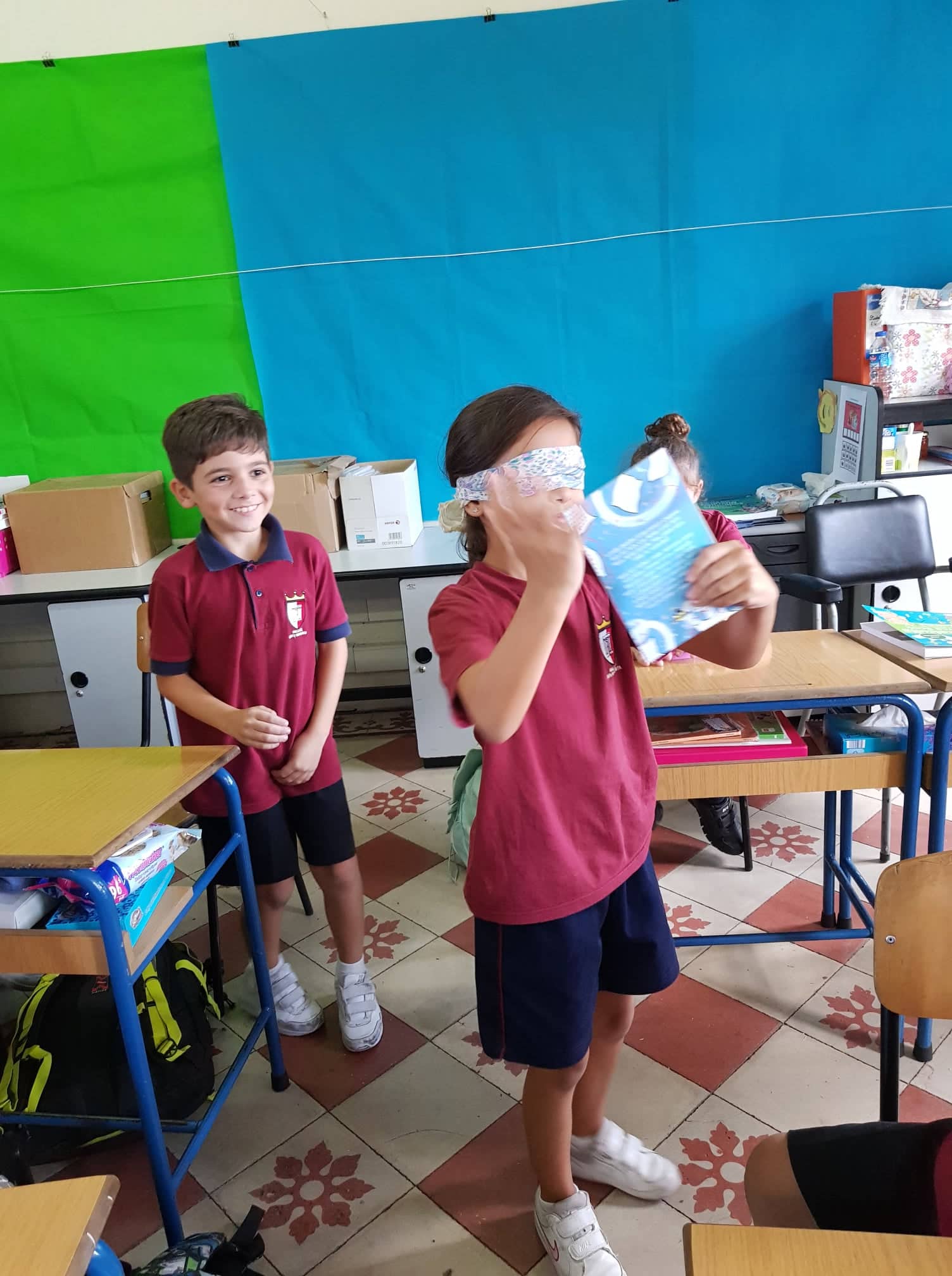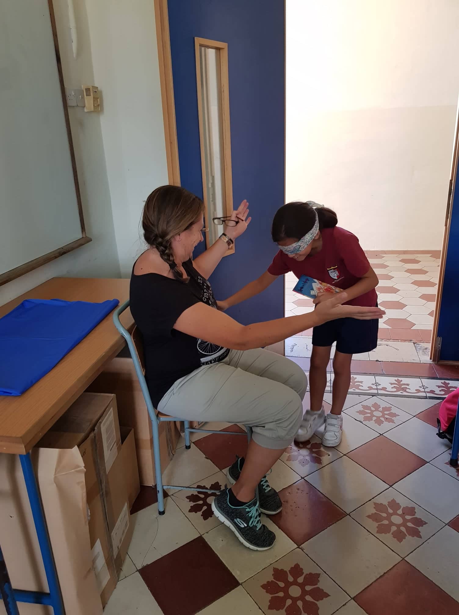 The next activity was the “Blindfold Challenge”. Some children were blindfolded and they had to deliver a book to our LSE. They used their sense of touch and hearing to complete this task.