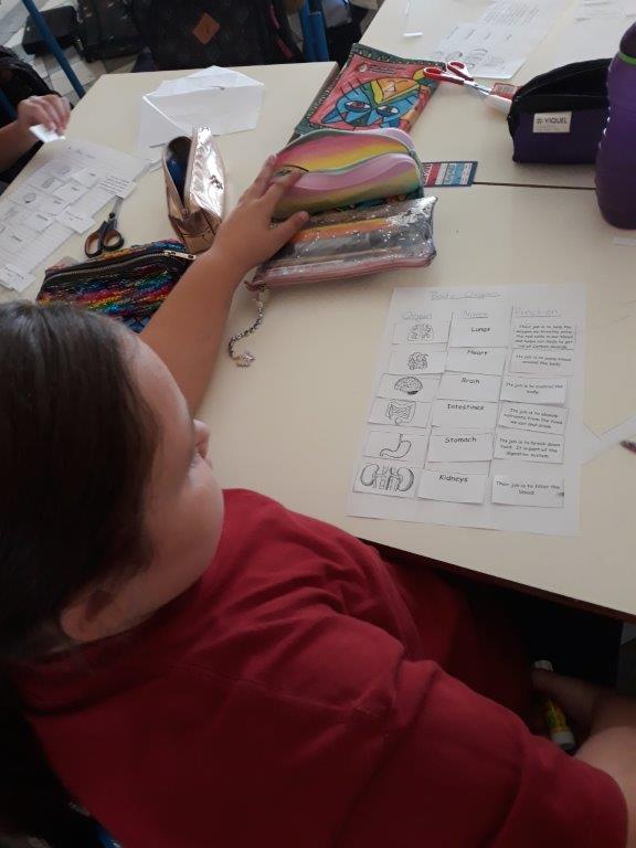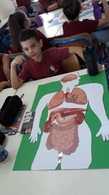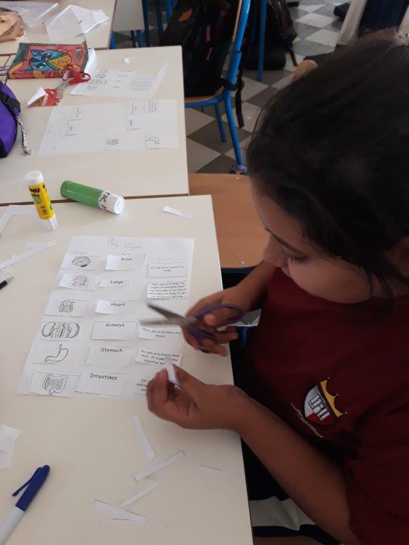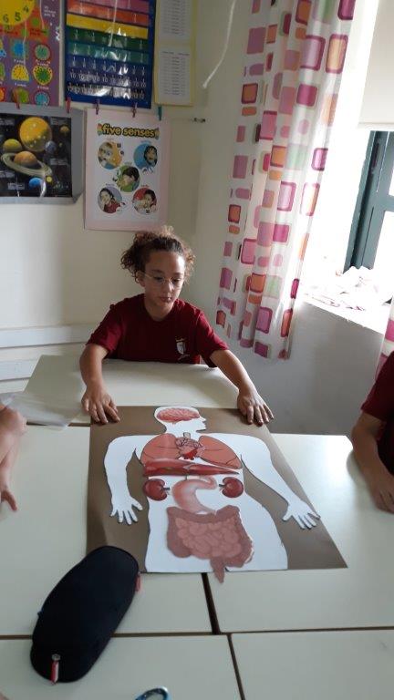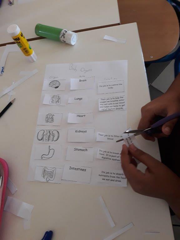 We started this lesson by naming the different body organs that we can think of. Then we had to work in groups and we had to place the body organs in the right place. Afterwards, we discussed the functions of each body organ. We ended this lesson with another activity where we had to cut and match each body organ with its function.