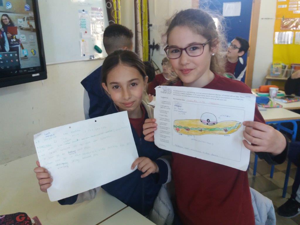 When we were happy with our creations, we did the final drawings and prepared to present them to the class. Our inventions include cars, which besides being used on the roads, can fly and be used in the sea, too. Another creation is an app with information about different countries which travellers can use to prepare for a holiday abroad. We created a special bed perfect for those who find it difficult to wake up!