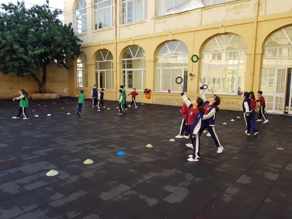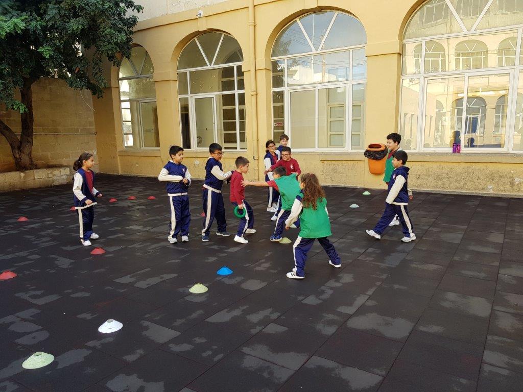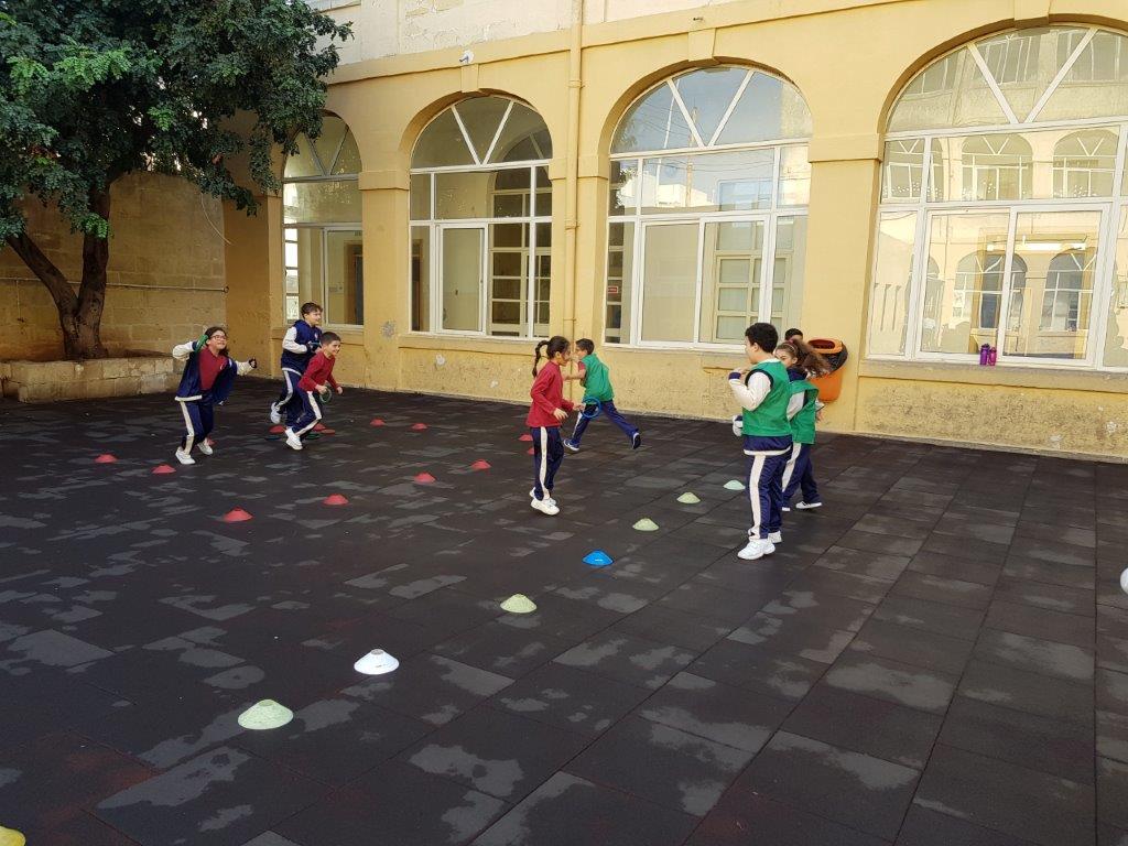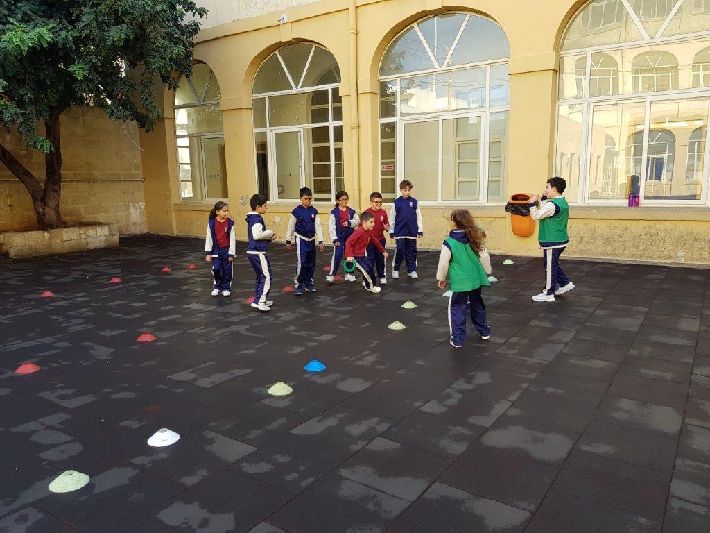 During one of our P.E. Lessons, we played the game Pirates of the Caribbean. We created a playing area with three zones: Treasure Island, the Beach and the Treasure Cave. We placed some quoits inside the Treasure Cave area.