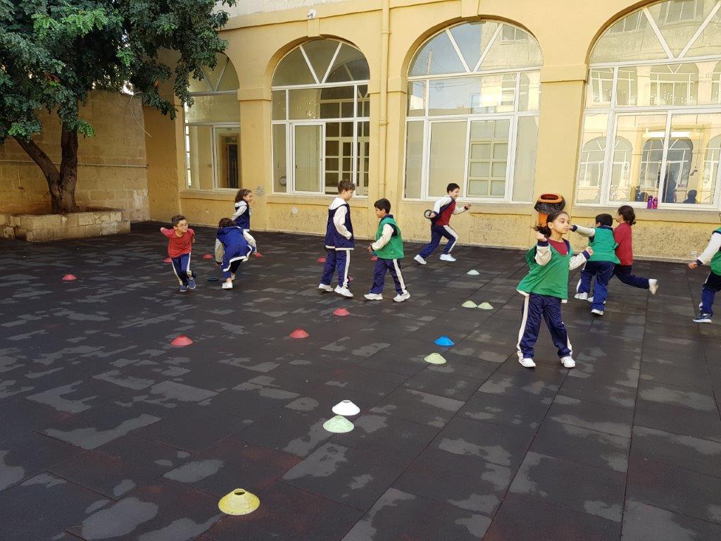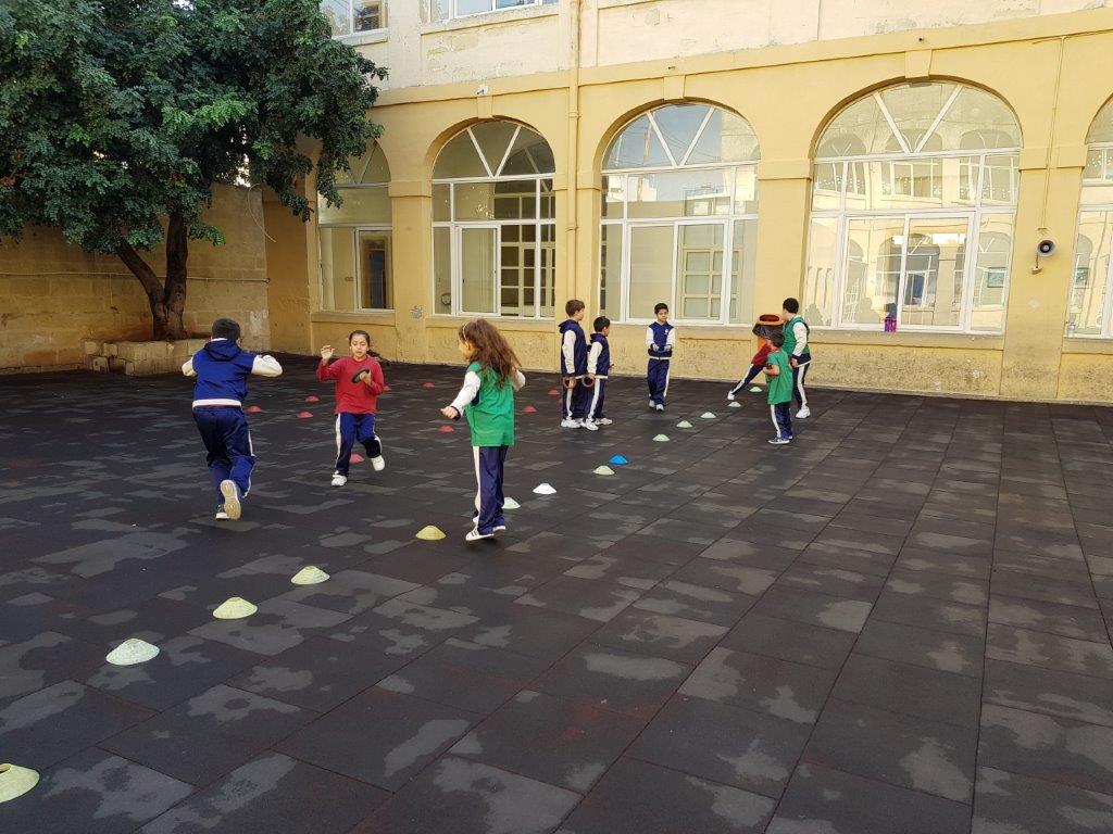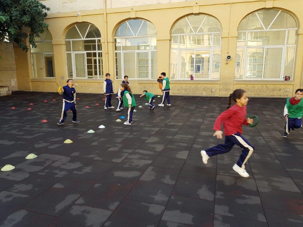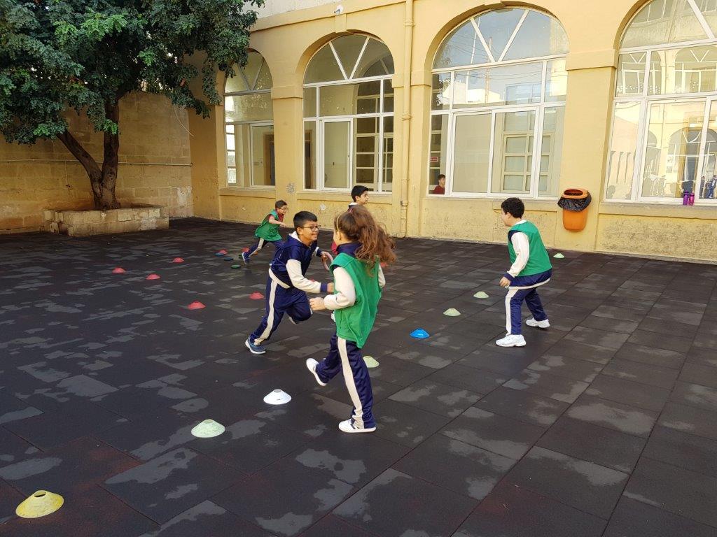 During one of our P.E. Lessons, we played the game Pirates of the Caribbean. We created a playing area with three zones: Treasure Island, the Beach and the Treasure Cave. We placed some quoits inside the Treasure Cave area.